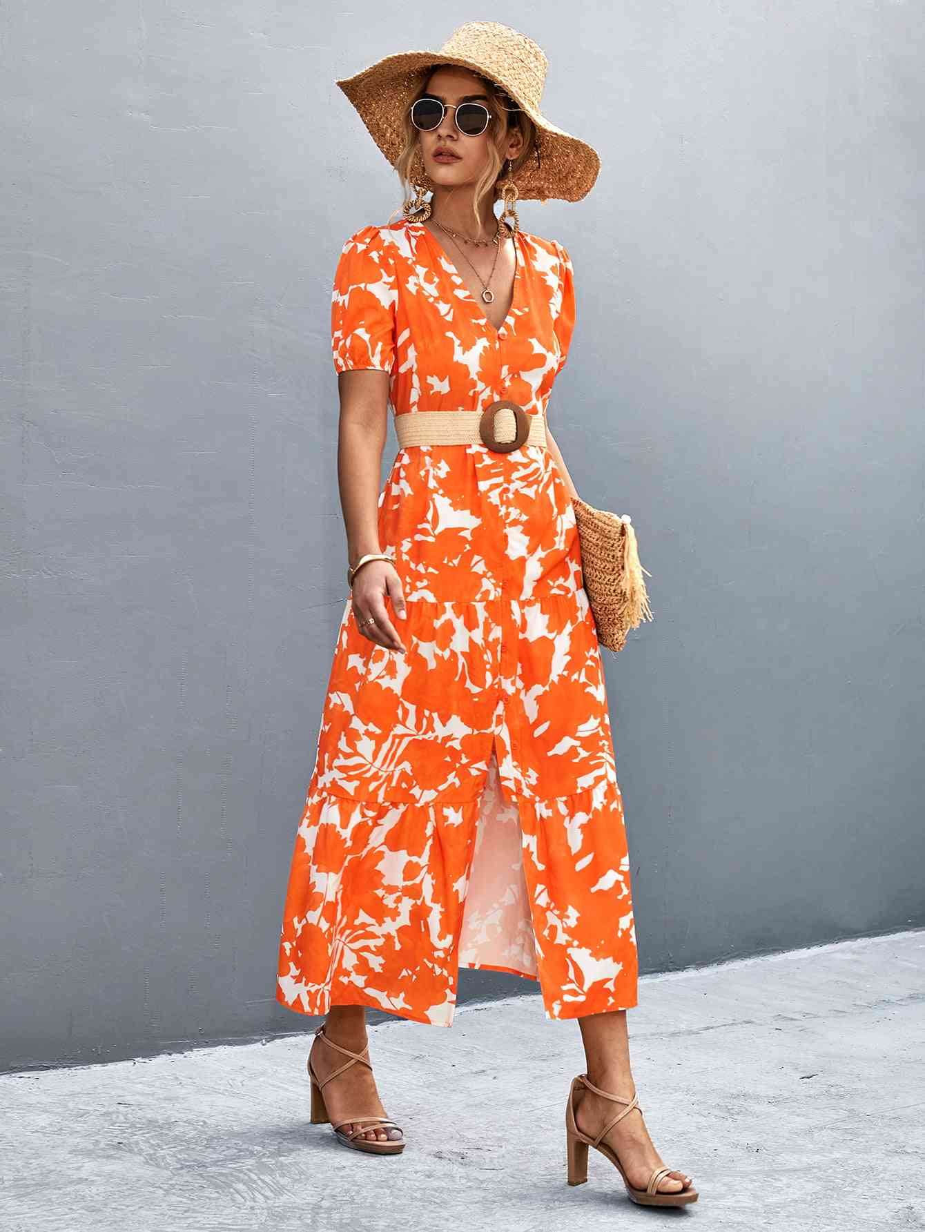 - V-Neck Short Sleeve High Slit Midi Dress bn