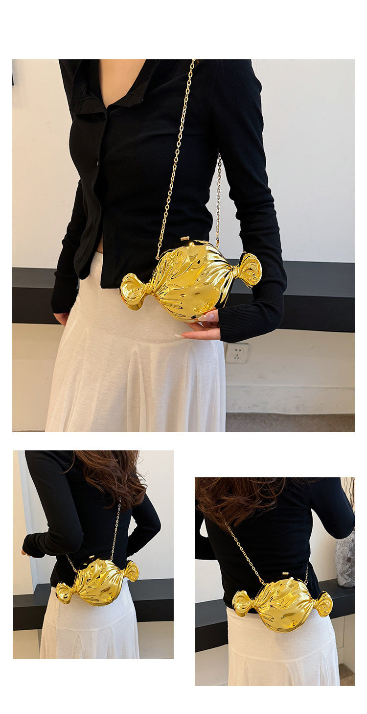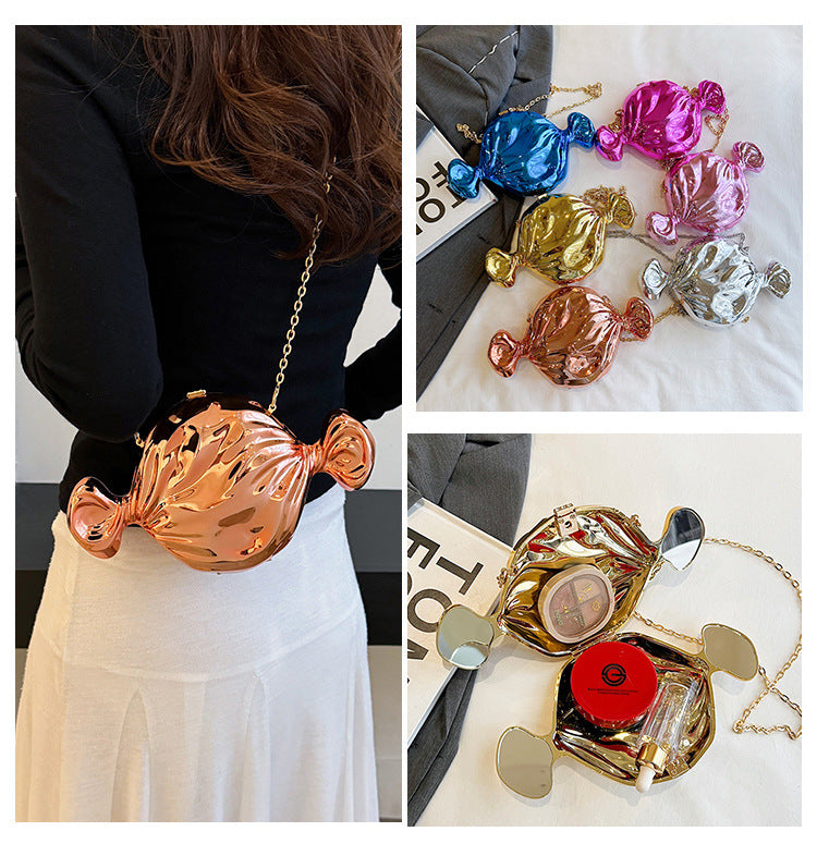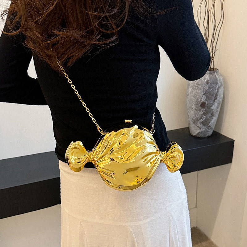The Bon Bon Bag is a mini bag that is both fun and functional. Inspired by the shape of bon bon candy, it is perfect for carrying all your essentials. Its playful design will add a touch of whimsy to any outfit. Upgrade your accessory game with The Bon Bon Bag!