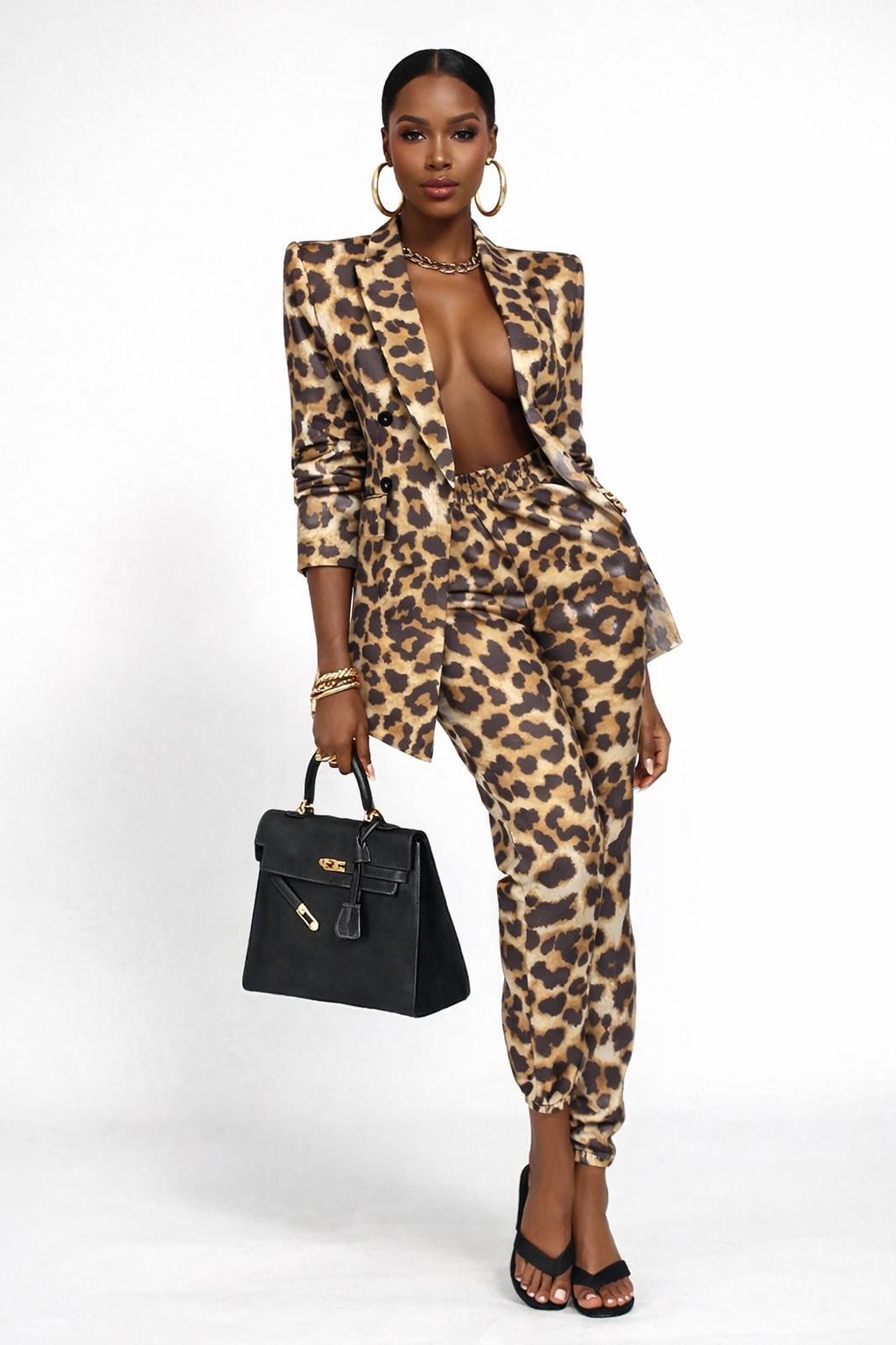 She's Roars with Style Leopard Print Blazer and Cropped Pants