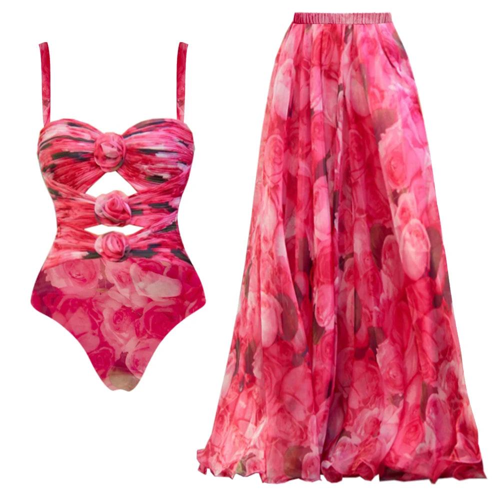 Blooming Siren One Piece Swimsuit and Sarong Skirt