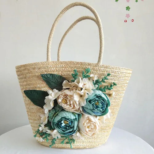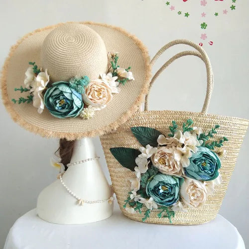 Indulge in luxury with the Garden Party Duo Floral Hat and Tote Bag in Pastel. Crafted with delicate straw material, this duo adds a touch of sophistication and elegance to any outfit. The perfect combination of fashion and function, this duo is a must-have for any garden party or outdoor event.