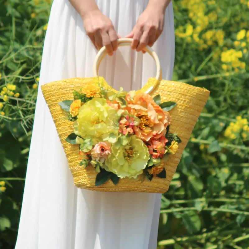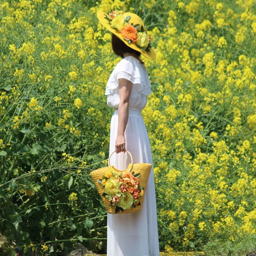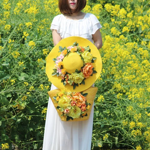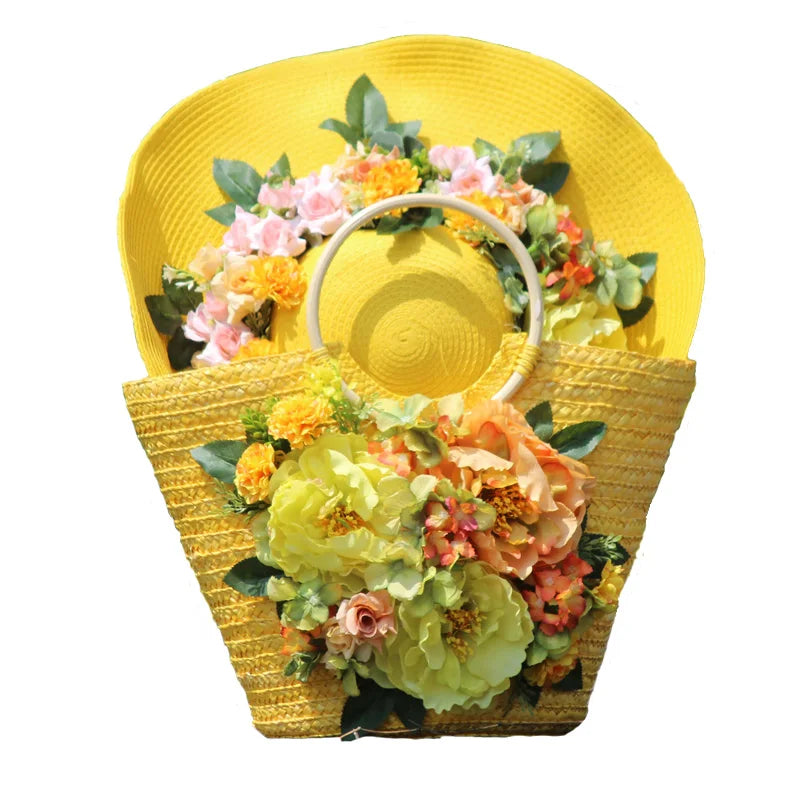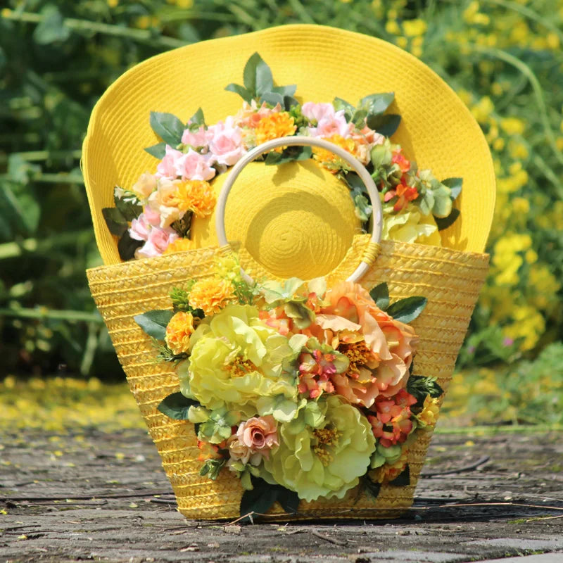The Garden Party Duo Floral Hat and Tote Bag in Yellow