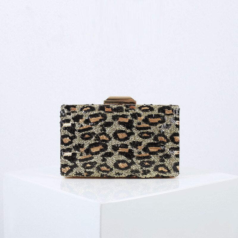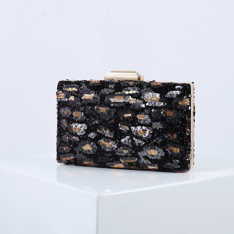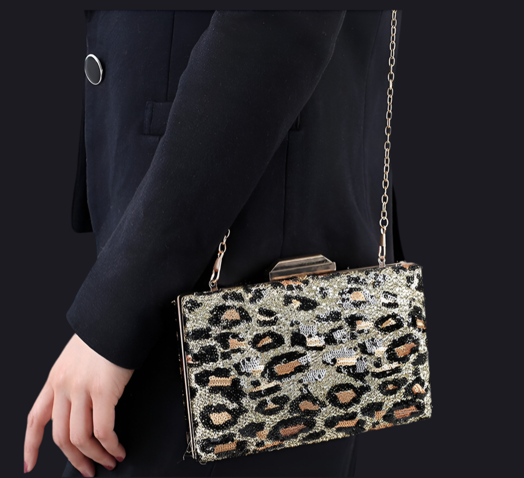 Be bold and fierce with this stunning sequined leopard clutch. Glistening with sparkles, it'll instantly become your go-to accessory for a night out. Get ready to shine!