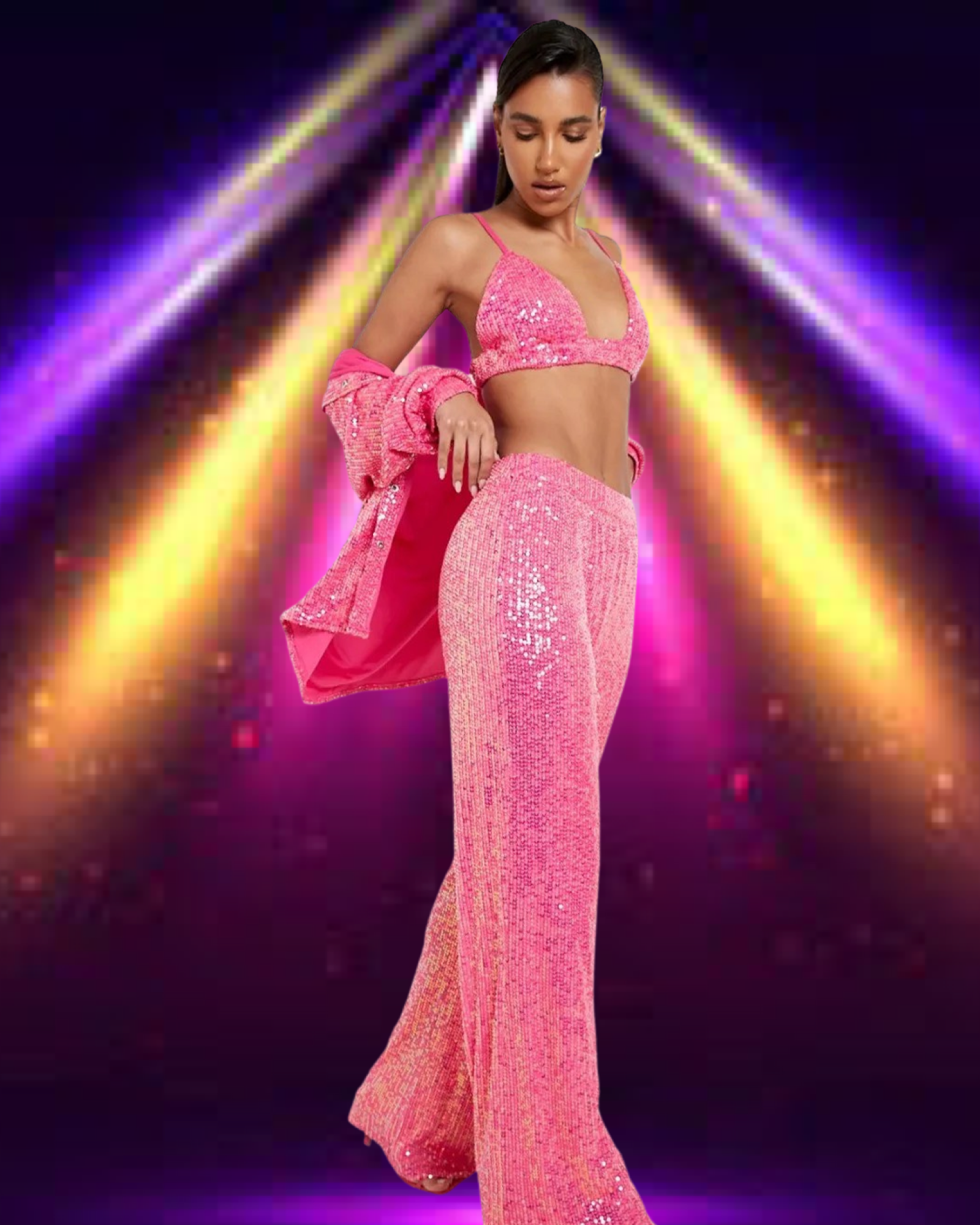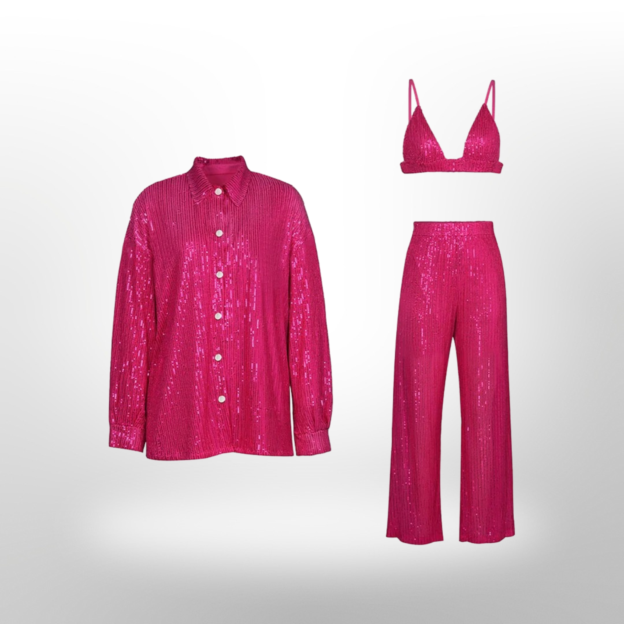 Vous vous sentirez comme une star dans notre ensemble 3 pièces à paillettes. Faites la fête avec style avec cet ensemble trois pièces. Vous allez adorer la coupe sexy et les paillettes éblouissantes. Ayez l'air sexy, sentez-vous à l'aise et faites tourner les têtes toute la nuit dans cet ensemble.