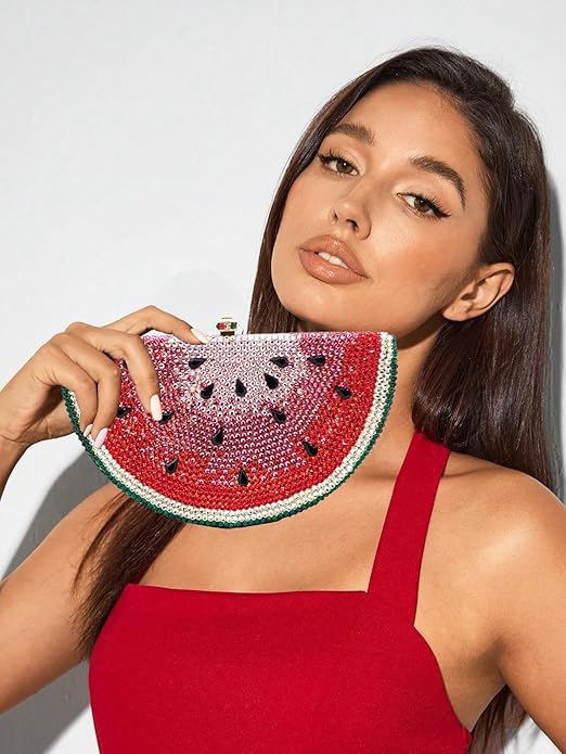 Indulge in the ultimate statement accessory with our Minaudiere Crystal Watermelon Purse. The intricately designed crystal watermelon adds a touch of whimsy to any outfit. Stay effortlessly chic with this unique purse that is sure to turn heads and spark conversations. Elevate your style  with this one-of-a-kind piece!