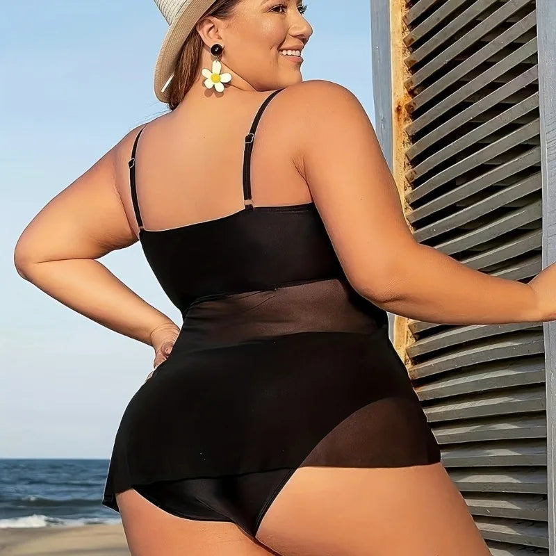A flattering sheer-layered tankini