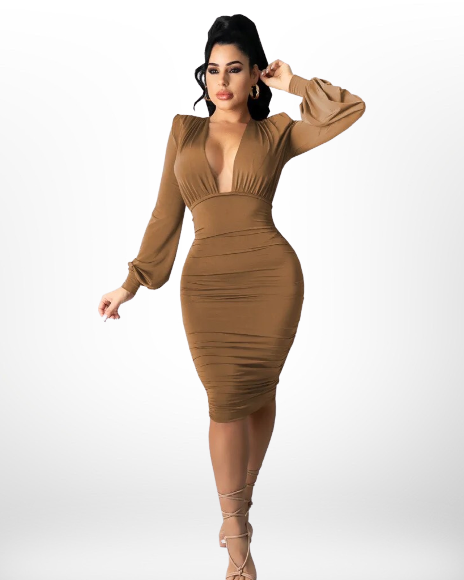 C'est toi le Boss Bébé ! C'est toi la plus sexy. La robe Boss Babe est un complément parfait à votre garde-robe pour toutes les occasions. Il s'adapte comme un rêve avec sa silhouette flatteuse. Cette robe présente un décolleté plongeant en V profond, des épaulettes, des fronces chics, une coupe slim, des manches longues et une fermeture éclair dissimulée au dos.