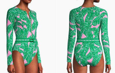 Coastal Muse One Piece Long Sleeve Swimsuit and Sarong in Pink and Green