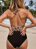 - Full Size Leopard Halter Neck One-Piece Swimwear Plus Size