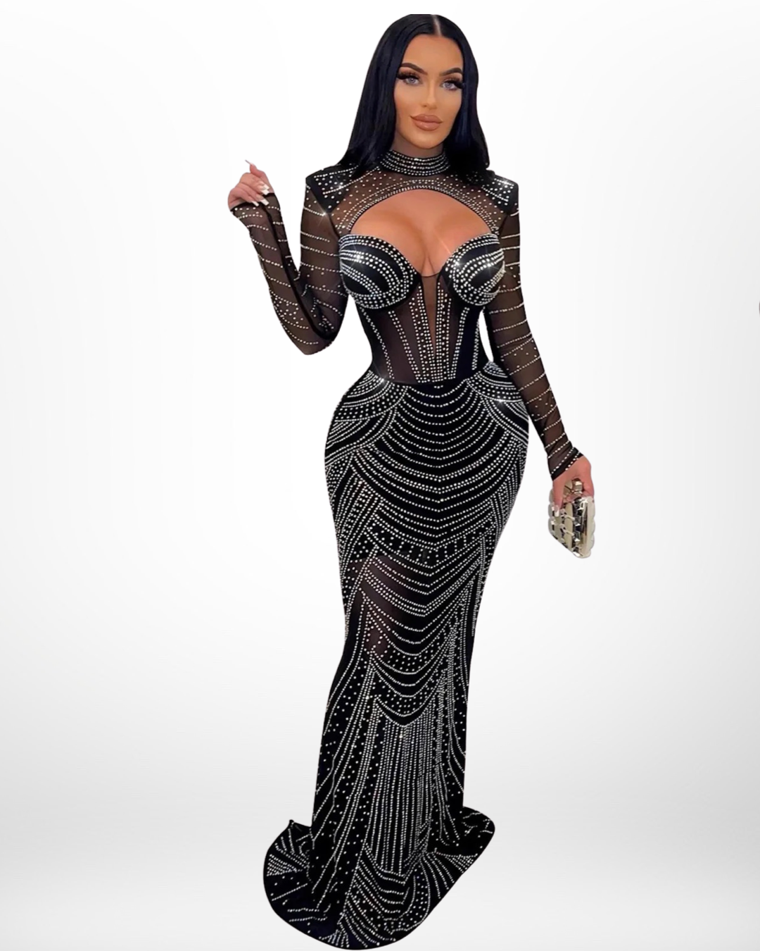 Step into grandeur and grace with the Glamor Goddess Gown from SHAWN ANDREA. This sheer gown is a statement-making piece that is sure to get you noticed. Embellished with delicate rhinestones, this gown is elegant yet daring, perfect for any formal occasion. Make heads turn and jaws drop as you make your grand entrance in this timeless piece. Get ready to be a glamor goddess!