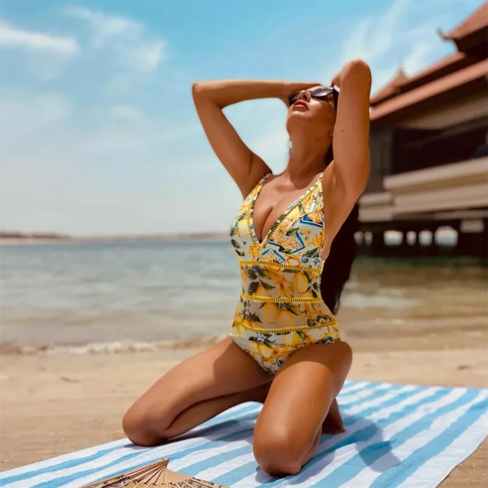 Lemon Breeze One Piece Swimsuit and Ruffle Sarong