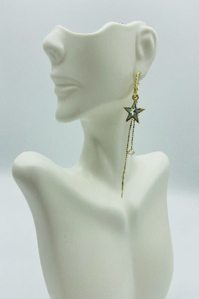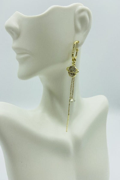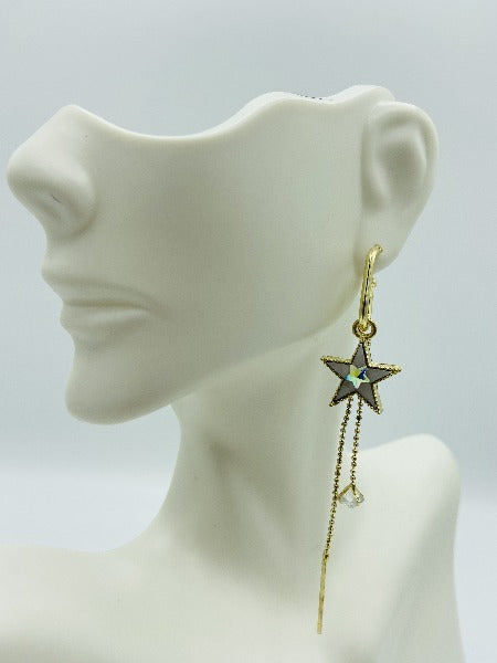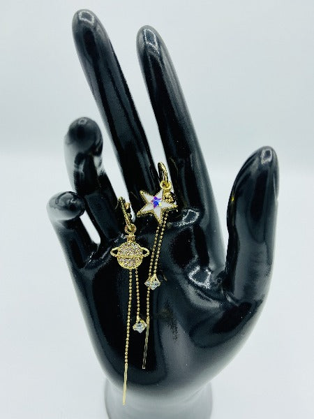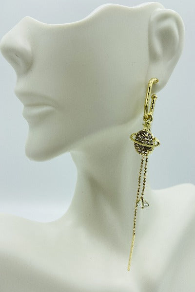 A planet in the shape of Saturn and a star make the perfect intergalactic pair of celestial rhinestone drop earrings. These mythos inspired mismatched earrings are for the adventurous, for the brave, and the spirited. Gold tone enamel and rhinestones pair together cosmically to give the chic addition to your daily looks.
