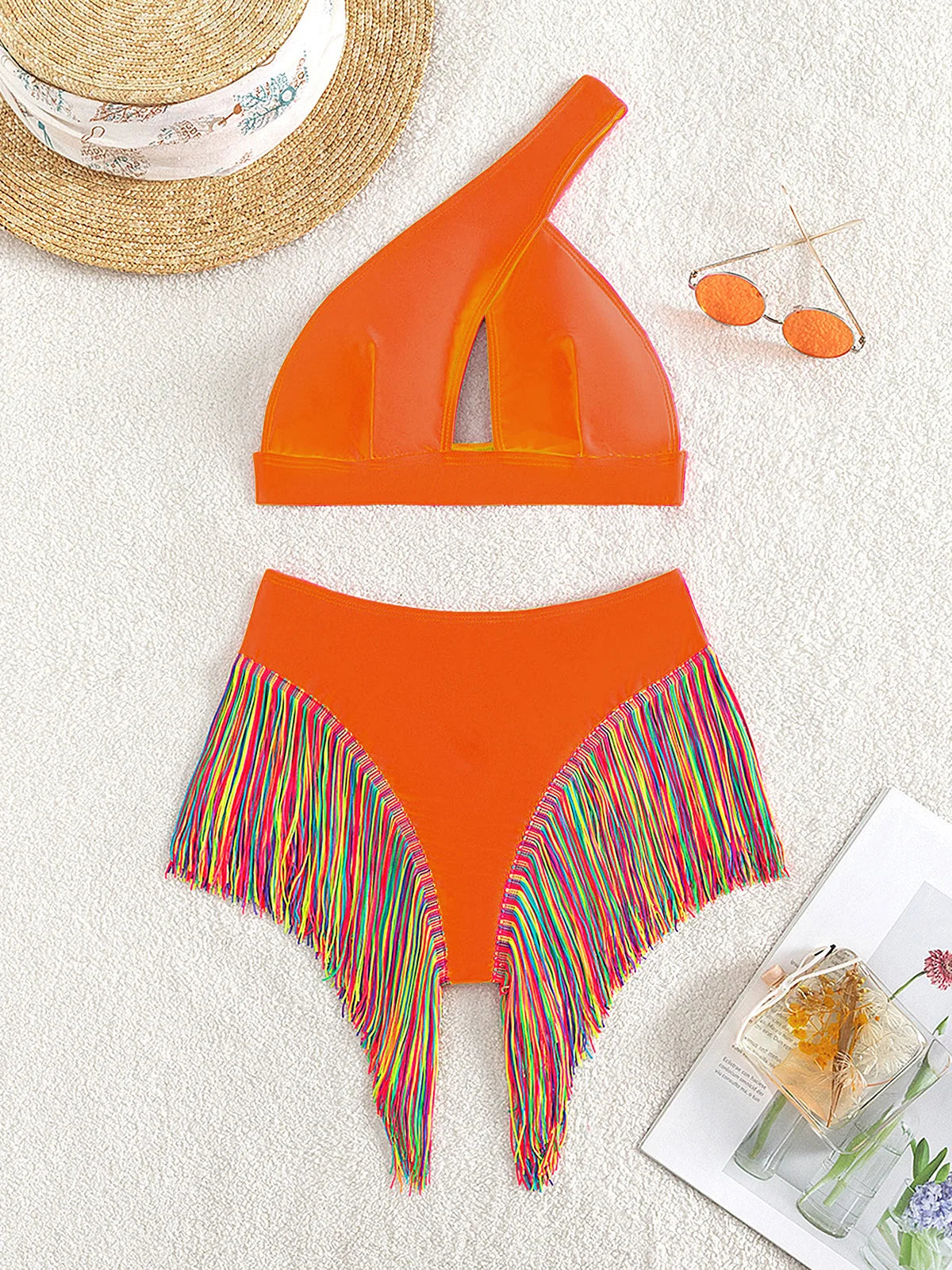 Elevate your swimwear collection with our Seaside Swing Bikini. The high waist design flatters your curves while the tassel details add a touch of playful elegance. Made for the confident and chic woman, our swimsuit is perfect for poolside lounging or beach getaways. Get ready to turn heads and make a statement with this must-have summer essential!